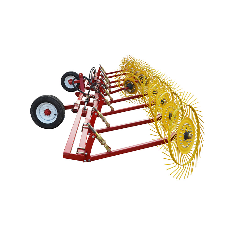 휠 레이크는 일반적으로 갈퀴 치아, 레이크 프레임, 연결 장치 및 구동 시스템으로 구성됩니다. 갈퀴 치아는 핵심 구성 요소입니다헤이 레이크, 그들은 특정 각도와 간격으로 배열되며 건초를 쉽게 침투하여 잡아서 땅이나 낮은 잔디에서 집어들 수 있습니다. 레이크 랙은 레이크 이빨을지지하고 트랙터 또는 기타 전원에 대한 인터페이스를 제공하는 책임이 있습니다. 연결 장치는 헤이 레이크가 트랙터에 안정적으로 장착 될 수 있도록하는 반면, 드라이브 시스템은 트랙터가 제공 한 전원을 사용하여 휠 레이크를 구동하여 회전하거나 움직여 건초의 수집 및 마무리를 달성합니다.